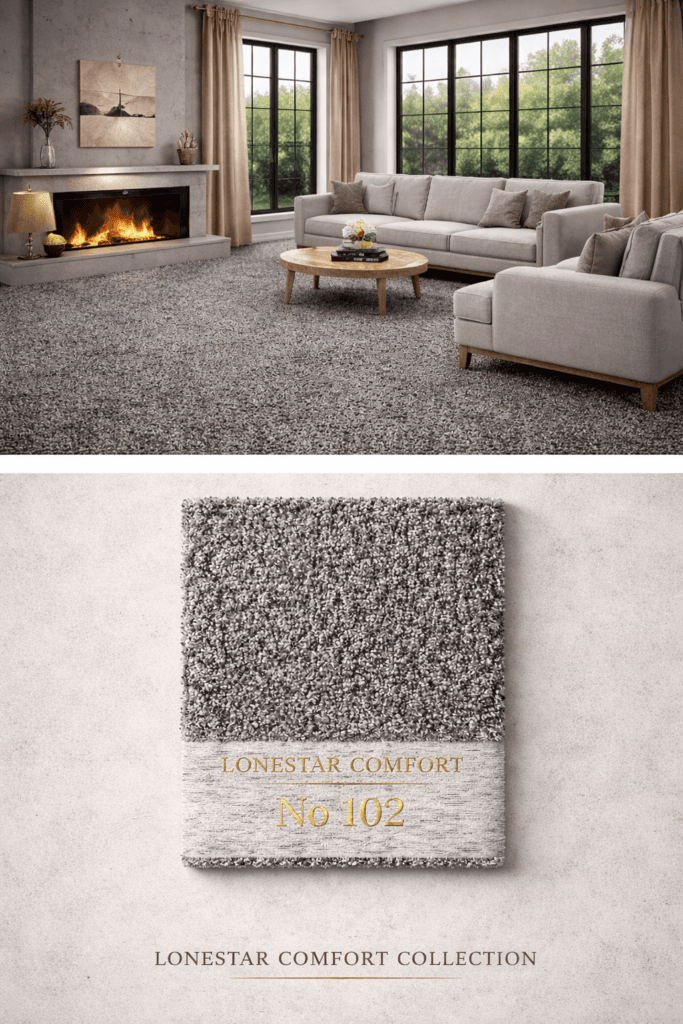 Perfect for bedrooms, living areas, offices, and relaxed gathering spaces, Lonestar Comfort No. 102 pairs beautifully with creamy upholstery, layered neutrals, and modern accents. Its versatile tone helps create a calm, polished interior while delivering the soft underfoot feel homeowners want in a comfortable carpet.
