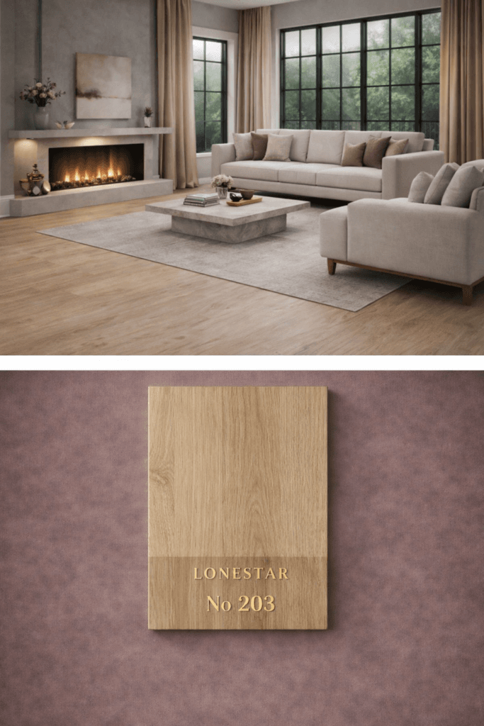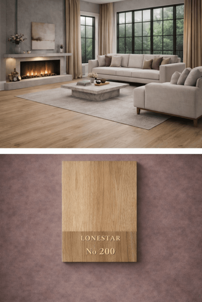 Lonestar No. 204 showcases a warm honey-brown wood look with a naturally expressive grain and a sunlit richness that brings warmth and energy into the space. Its golden character creates a welcoming, designer-inspired finish that feels both timeless and inviting, making it a strong option for interiors that benefit from a more vibrant natural wood tone.