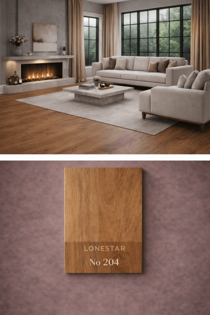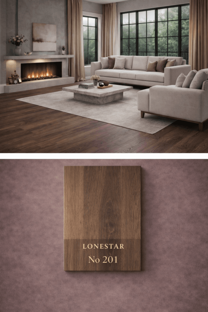 Lonestar No. 201 brings a rich, dark walnut-inspired wood look with warm brown undertones and smooth, elegant grain movement that adds instant depth and sophistication. Its deeper finish creates a more dramatic foundation while still feeling polished, timeless, and comfortably upscale.