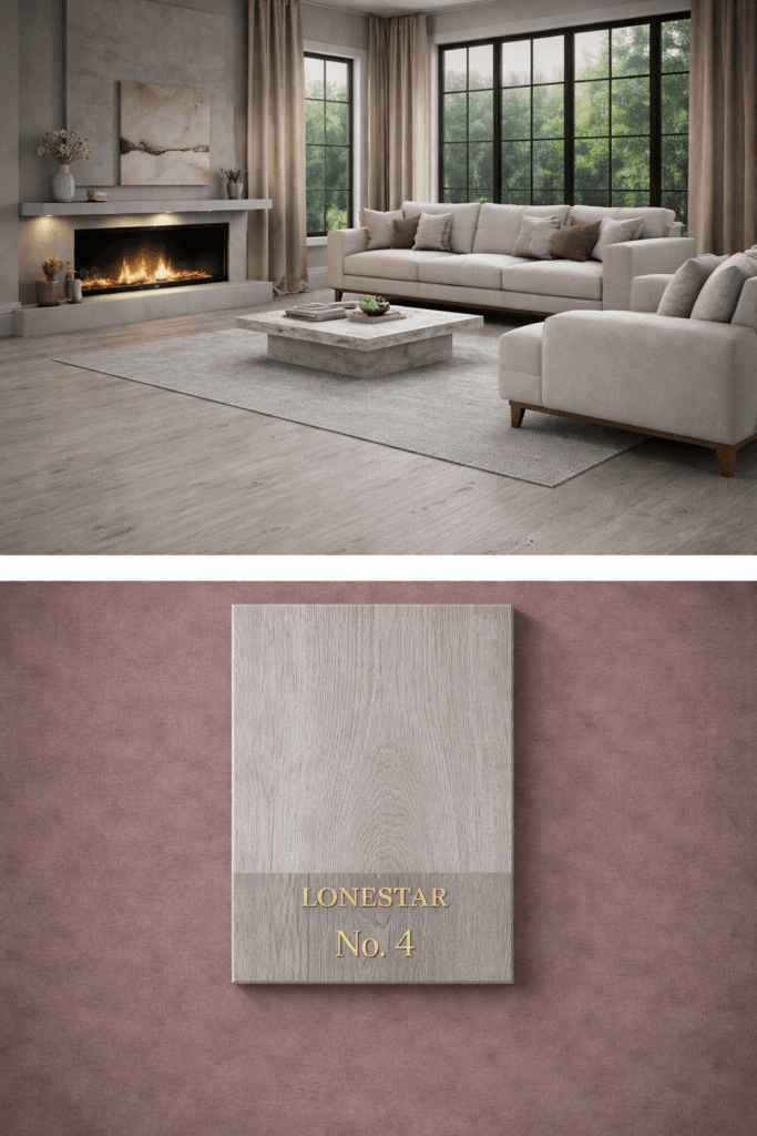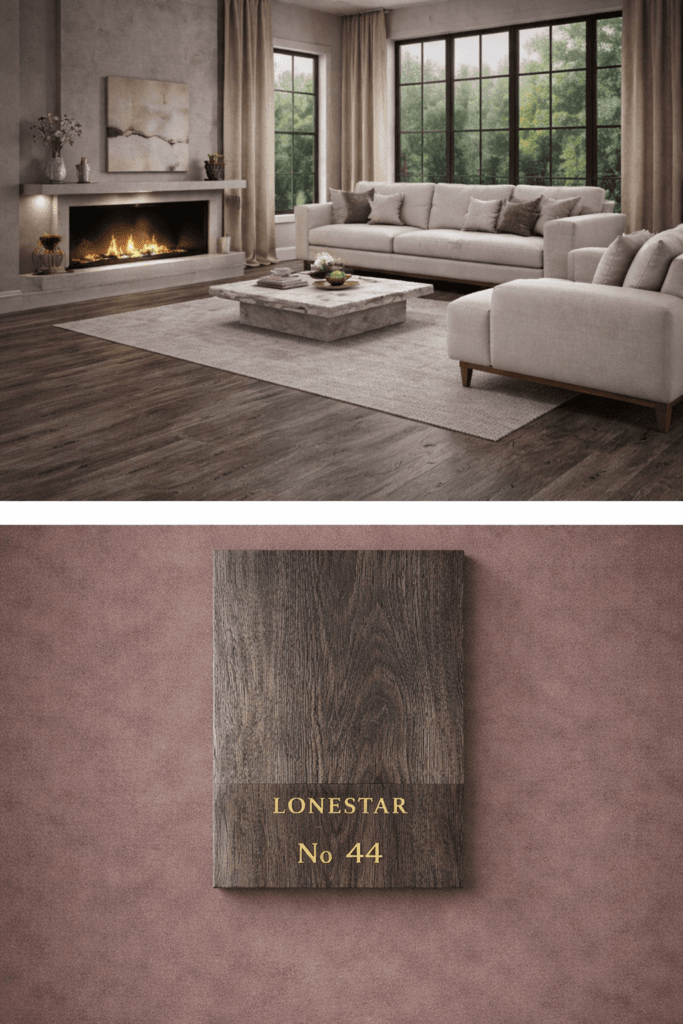 Ideal for living areas, dining rooms, offices, and upscale residential spaces, Lonestar No. 44 pairs beautifully with soft neutral upholstery, stone surfaces, warm lighting, and minimalist decor. Its darker finish helps anchor the room and create a more dramatic designer-driven atmosphere while maintaining the performance benefits of luxury vinyl flooring.