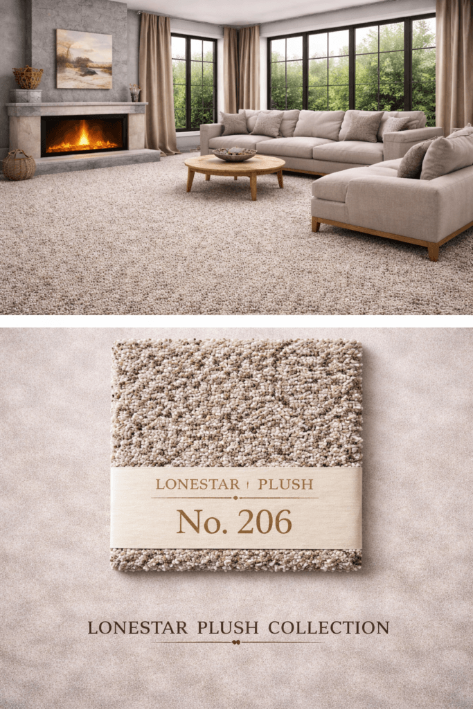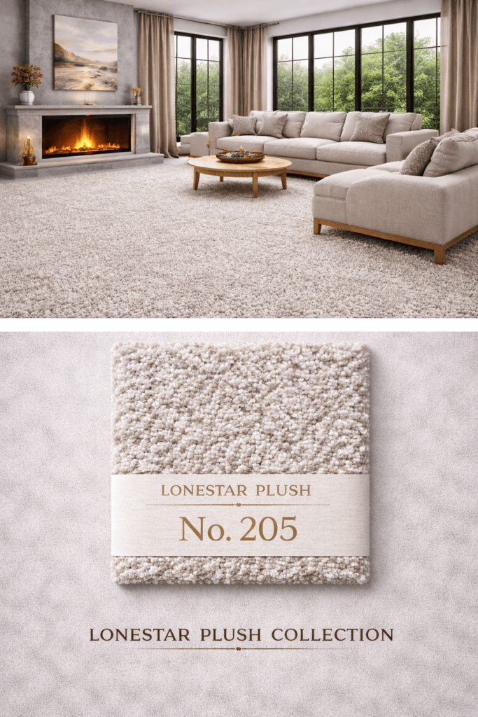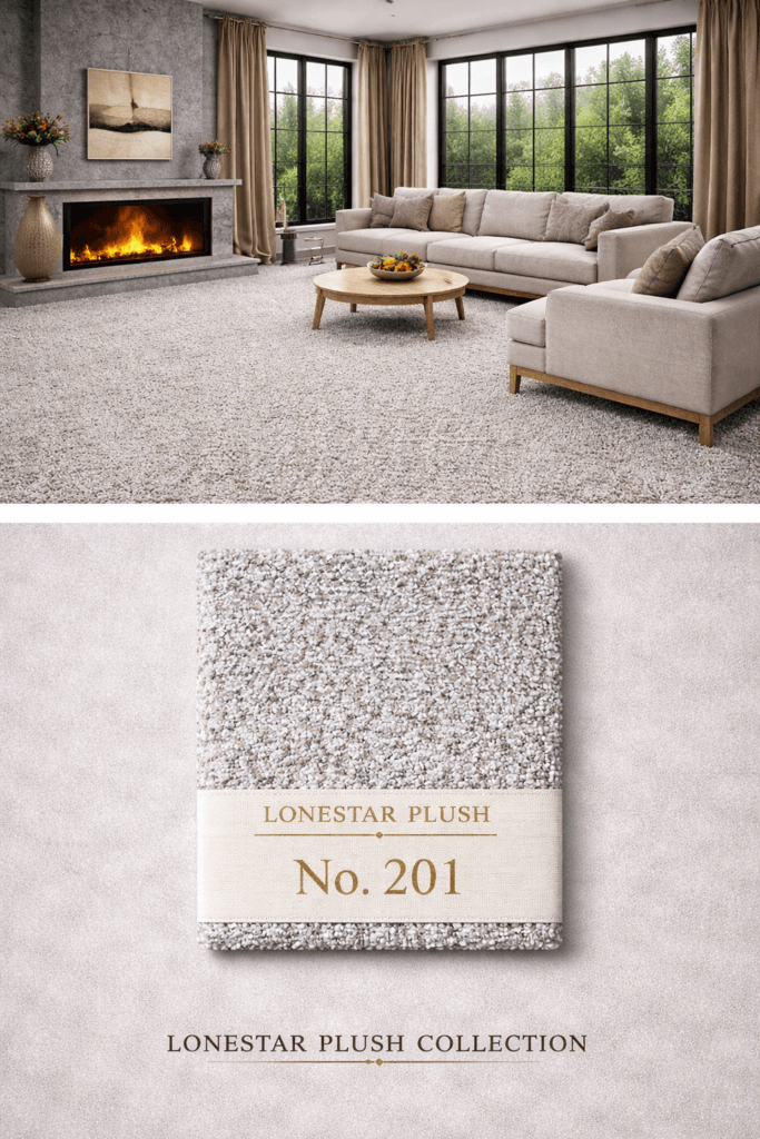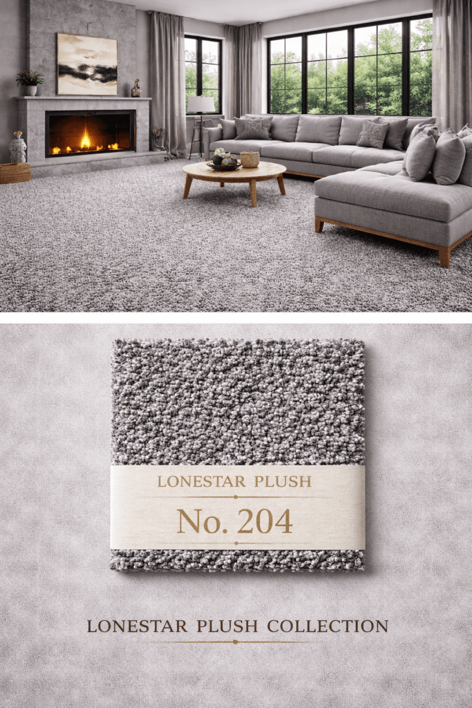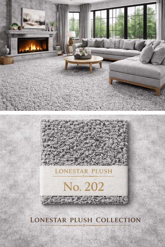 Designed for spaces where a cooler foundation helps create a clean and elevated atmosphere, Lonestar Plush #202 works beautifully in living rooms, media rooms, bedrooms, and open-plan layouts. It offers the softness and comfort expected from plush carpet while supporting a fresh, updated interior aesthetic that pairs easily with both light and dark furnishings.