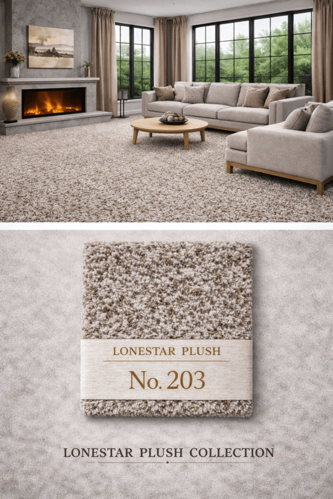 Made to create an inviting base throughout the home, Lonestar Plush #203 fits beautifully in family rooms, bedrooms, hallways, and shared living spaces where comfort and versatility matter most. It delivers a plush visual texture that complements a wide variety of furniture styles, helping rooms feel both comfortable and thoughtfully finished.